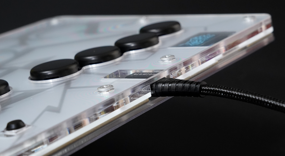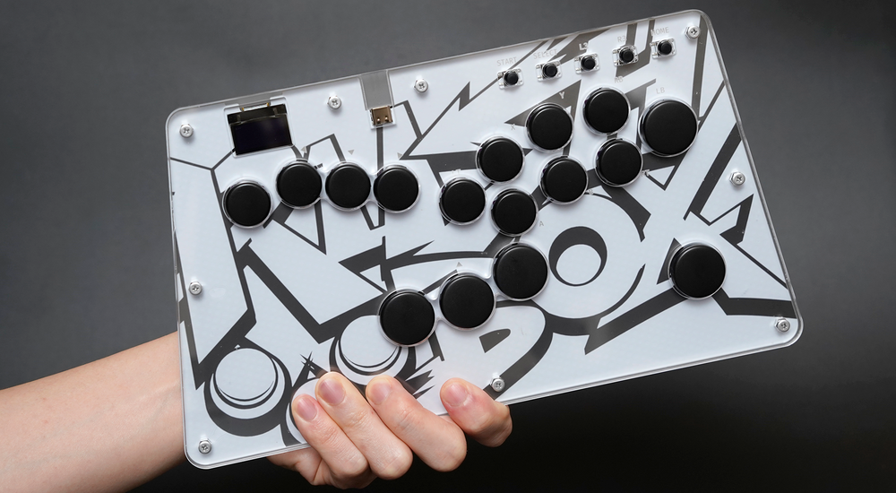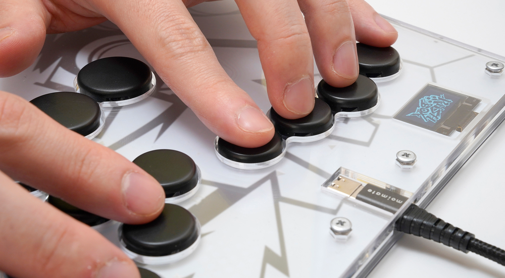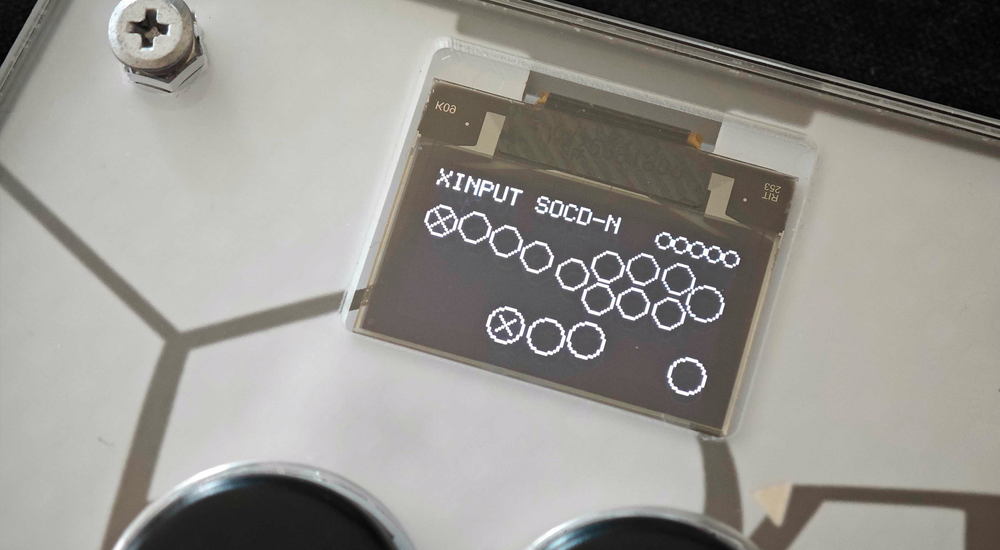 高性能マイコンRP2040と独自ファームウェアを搭載。OLEDディスプレイで入力モードやボタン状態をひと目で確認できる。