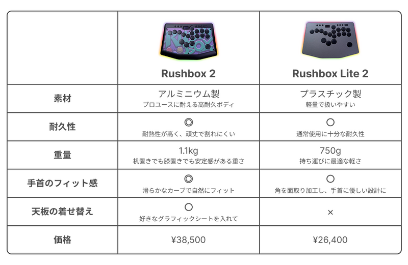 | カスタムセット | スイッチをもっと速く、もっと強く、カスタマイズしたい方に! Rushbox Lite 2 + カスタマイズキット | ¥28,600 |